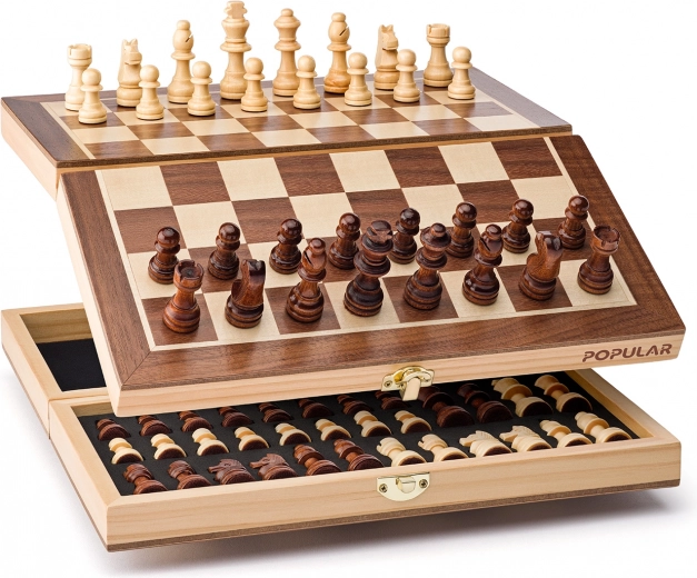 Užijte si elegantní hraní s našimi magnetickými šachy v luxusním dřevěném boxu. Skvělá volba pro cestování nebo domácí hrání díky intarzovanému designu a úložnému prostoru.