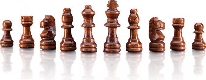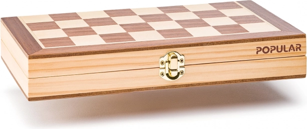 Magnetické šachy ve dřevěném boxu, ideální pro cestování a domácí hraní, s intarzovaným designem. Vhodné pro děti i dospělé.