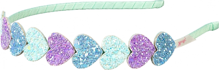 Stylová čelenka pro malé slečny, zdobená třpytivými srdíčky v modrých odstínech. Ideální doplněk pro každodenní účesy i slavnostní příležitosti.