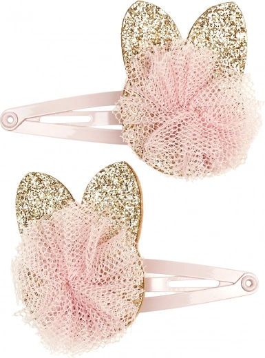 Tyto krásné vlasové sponky jsou určeny pro malé parádnice od 3 let. Sada obsahuje dvě kovové sponky s růžovým metalickým leskem, které jsou ozdobeny zlatou aplikací ve tvaru kočičky a doplněny růžovou tylovou bambulkou. Tento něžný detail jistě okouzlí každou malou romantičku. Díky zacvakávacímu mechanismu sponky spolehlivě drží ve vlasech po celý den. Ideální pro každodenní nošení i speciální příležitosti.
