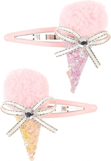 Tyto sponky do vlasů jsou nejen funkční, ale také krásně ozdobí každou dětskou hlavičku. Každá sponka je zdobená roztomilým kornoutem se zmrzlinou, třpytivým kornoutem, mašlí s lesklým kamínkem uprostřed a tylovou kuličkou. Díky zacvakávacímu mechanismu zůstávají spolehlivě na svém místě po celý den.