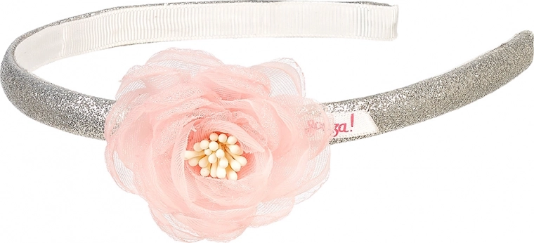 Tato elegantní čelenka je navržena tak, aby vyhovovala potřebám malých slečen od 3 let věku. Je perfektní pro jakékoli slavnostní příležitosti nebo každodenní nošení. Čelenka je lemovaná bílou stuhou, což zajišťuje komfort a dlouhodobé nošení bez nepříjemného tlaku. Stříbrný třpyt čelenky je efektně doplněn velkou růžovou květinou z tylu, která dodává účesu kreativitu a ženskost: