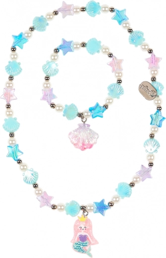 Objevte kouzelnou sadu šperků pro malé parádnice, která obsahuje náhrdelník s přívěskem mořské víly a ladící elastický náramek. Díky jemné růžové a světle modré barvě bude sada nezbytným doplňkem na každou oslavu!