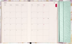 Diář také zahrnuje měsíční přehledy, vhodné pro plánování prázdnin nebo delších dovolených. Jeho magnetické uzavírání zajišťuje bezpečné uzavření a ochranu vašich plánů.