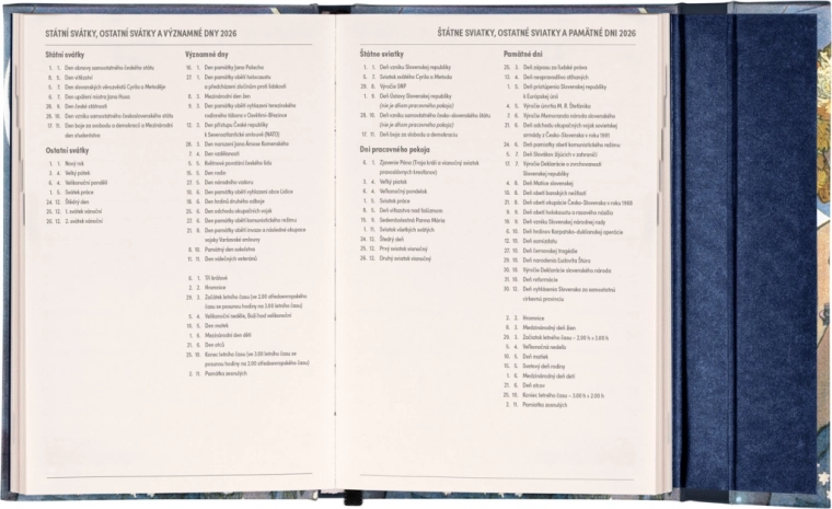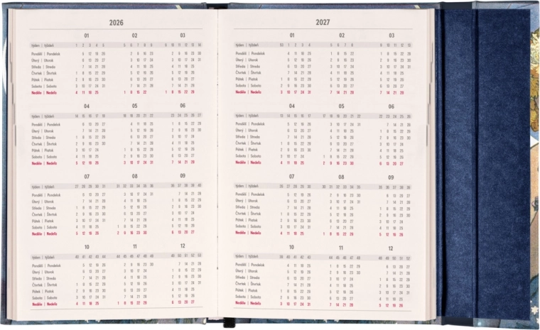 Tento diář s atraktivním vzhledem obsahuje horizontální rozložení s českým a slovenským kalendářem na dva týdny, což zaručuje prostor pro podrobnou evidenci vašich plánů.