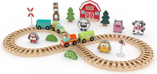 Tento hrací set s kolejemi přináší dětem pestrý svět na farmě. Díky kvalitnímu dřevu z udržitelných zdrojů a zpracování bez chemikálií je hra nejen zábavná, ale i bezpečná. Děti si postaví jednoduchou trať, projedou ji vláčkem a vytvoří si vlastní farmářský příběh.