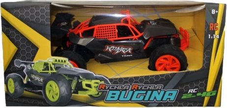 Zažij adrenalin na každé trati s touto terénní RC buginou v měřítku 1:14. Nabízí maximální rychlost až 25 km/h, dálkové ovládání 2,4 GHz s dosahem 30–40 m a absorpční tlumiče na obou nápravách pro hladkou jízdu i v náročném terénu.
