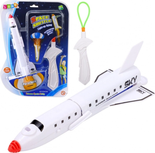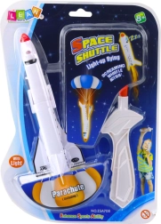 Kosmická loď se světelným padákem a prakem je hračka, která děti nadchne pro venkovní aktivity. Odolnost plastu zaručuje dlouhotrvající použití a automatické rozložení padáku zajišťuje bezpečné přistání. Světelné efekty dodávají na atraktivitě, zvláště při hře ve tmě.