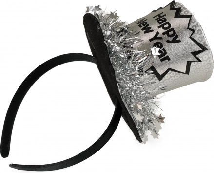 Oslavte příchod Nového roku stylově s tímto stříbrným mini kloboukem připevněným na pohodlné čelence. Tento elegantní doplněk dodá vašemu outfitu slavnostní šmrnc a zaručeně upoutá pozornost na každém silvestrovském večírku.