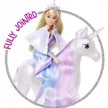 Objevte svět fantazie s panenkou Steffi, která je oblečena do kouzelných princeznovských šatů, ideálních pro každou pohádku. Její věrný společník, jednorožec, nejen že působí velkolepě díky své svítící funkci, ale také umožňuje tvorbu různých účesů díky své dlouhé hřívě.
