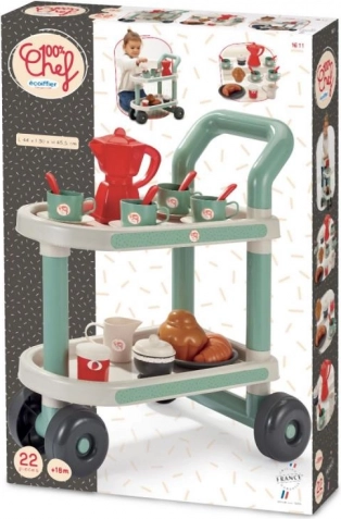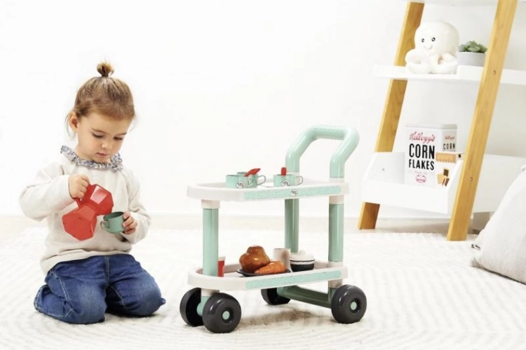 Představujeme snídaňový vozík s příslušenstvím, ideální pro malé baristy a pekaře. Tento set obsahuje celkem 22 kusů, které poskytnou vše potřebné pro dokonalé dopolední občerstvení. Vozík je na kolečkách, což zaručuje snadnou přenositelnost po pokoji či zahradě.