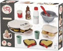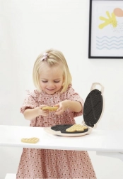 Tento vaflovač je ideální pro děti, které chtějí experimentovat s pečením. Set zahrnuje vše, co je potřeba pro přípravu chutných vaflí. Vaflovač, jehož rozměry jsou 21 x 17 x 5 cm, je dodáván s několika doplňky. Můžete si vybrat mezi přípravou vaflí s marmeládou nebo čokoládovou polevou. Součástí balení je také nádobí pro dva, vajíčka, mléko a miska s metličkou.