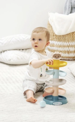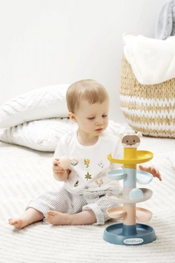 - Věž k sestavení v jemných barvách, která je lákavá pro malé dítě.