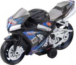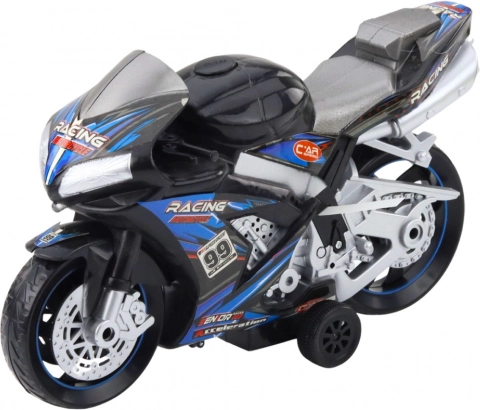 Tato černo-modrá motorka je vyrobena z vysoce kvalitního plastu, je odolná vůči poškození a má pevná, široká kola se stabilní oporou, což zajišťuje bezpečnou a pohodlnou hru na různých površích. Efekty osvětlení a zvuky lze aktivovat stisknutím tlačítka - realistické zvuky motoru a světelné záblesky zaujmou děti a dodávají hře realistický nádech.