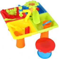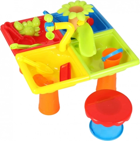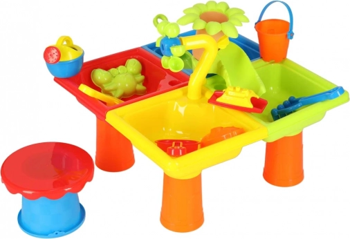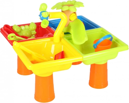 Vodní stůl a pískoviště v jednom je ideální pro zahradu, terasu nebo balkón. Stůl s oddělenými částmi umožňuje dětem hrát si jak s vodou, tak i s pískem. Děti mohou tvořit vlastní vodní přístav a zahnat nudu například i na pláži.