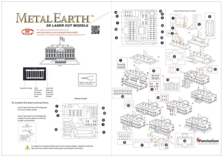 Metal Earth 3D puzzle Bílý dům je úchvatným zážitkem pro všechny modelářské nadšence. Vysoce detailní design a výzva během skládání zajišťují, že výsledek bude okouzlující dekorací pro váš domov či kancelář.