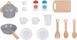 Obsahuje také bohatou sadu nádobí a náčiní, jako jsou hrnce, pánve, talíře a mnoho dalšího. Díky certifikaci FSC® je zaručeno, že kuchyňka je vyrobena z dřeva zodpovědně získaného z lesů šetrně obhospodařovaných.