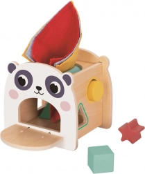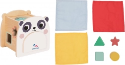 Motorická kostka Panda od 2Kids Toys je dřevěná hračka inspirovaná Montessori hračkami, která kombinuje zábavu s učením. Děti baví sadu látkových kapesníků, které lze snadno vytahovat a vkládat zpět, což podporuje jemnou motoriku a koordinaci oko-ruka.