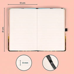 Uvnitř najdete 172 linkovaných stran z kvalitního krémového papíru pro všechny vaše nápady a poznámky.
