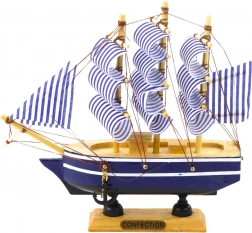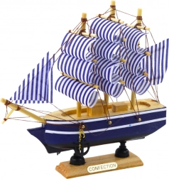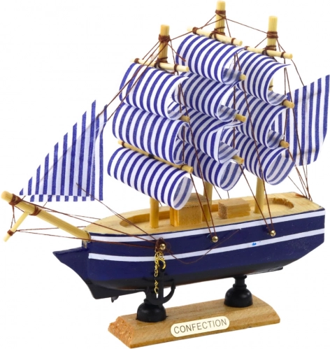 Stylový model plachetnice s klasickou konstrukcí je ideální pro všechny obdivovatele námořní estetiky. Tradiční třístěžňové plachtoví v bílomodrých pruzích a granátový trup s bílým pruhem vytvářejí efektní vzhled. Díky estetickým proporcím a ručnímu dokončení vyniká model jemnými detaily a elegantním vzhledem.