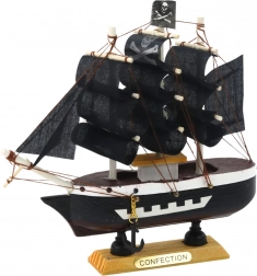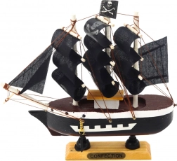 Svět pirátů ožije ve vaší domácnosti s tímto dekorativním modelem pirátské lodi. Tento malý, ale detailně propracovaný model připomíná slavné korzárské lodě z dob Zlatého věku pirátství. Svou trojstěžňovou konstrukcí, černými plachtami a charakteristickou lebku na vlajce působí dramatickým dojmem.