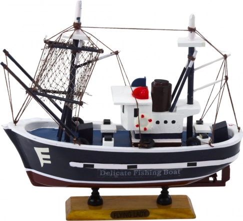 Model Flying Lady je dekorativní replika klasického rybářského člunu, inspirovaná loděmi využívanými při pobřežním a přístavním rybolovu. Má charakteristickou nástavbu, vysokou kapitánskou věž, jediný stěžň s lanovím a technické detaily imitující radary a komíny, což mu dodává unikátní, realistický vzhled. Je vyroben z dřeva a ručně dokončen, což mu přidává sběratelskou hodnotu a výrazný námořní charakter.