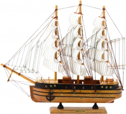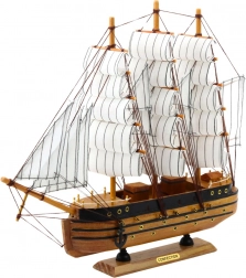 Tento dřevěný model historické plachetnice zaujme detailním vypracováním a stylovým designem, který mu dodává kouzlo dávných mořeplaveckých výprav a dobrodružství. Plavidlo disponuje klasickým obloukovým trupem, trojstěžníkovou konstrukcí a bílými textilními plachtami. Díky dřevěné základně lze model umístit na poličky, komody či stoly, kde se stane nepřehlédnutelnou ozdobou.