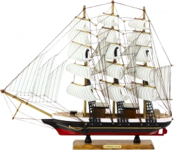 Tento fantastický model plachetnice je inspirován třístěžňovými loděmi, které brázdily oceány v dobách velkých zámořských výprav. S elegantním trupem, složitým lanovím a pečlivě zpracovanými paluby zaujme všechny, kteří milují detaily a historii zámořských plaveb.