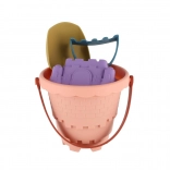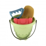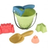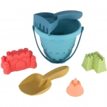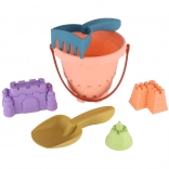 Kbelík, lopatka, hrabičky a tři formičky pro kreativní stavění a tvarování písku v jedné lehké sadě.