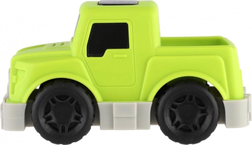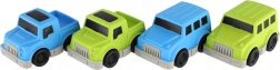 Modely jsou k dispozici ve 4 variantách (osobní vůz, SUV, pickup a náklaďák) v líbivých modrých a limetkových barvách. Kompaktní rozměr 9 cm se vejde do batůžku i kapsy kočárku, takže je ideální na doma, na návštěvy i na cesty.