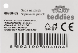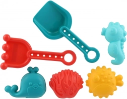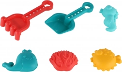 V balení najdete vše, co děti potřebují k tvoření: lopatku na nabírání, hrabičky na uhlazení a tvarování a barevné formičky pro zábavné tvary. Sadu využijete na pískovišti, na pláži i ve vaně.