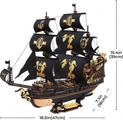 Pusťte se do skládání tohoto precizního modelu válečné lodi, který nabízí více než jen estetickou krásu. Je vybaven funkčním kormidlem a 13 plachtami, které můžete různě upravit. Nechybí ani lesklá děla a detailně vyřezávané ornamenty na palubě.