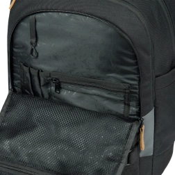 Tříkomorový organizér obsahuje speciální kapsu na notebook z jemného sametového materiálu a praktické dvoucestné zipy YKK pro snadný přístup k obsahu. Postranní kapsy jsou ideální pro láhve BAAGL a celý design batohu doplňuje stylový přívěsek.