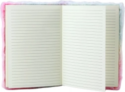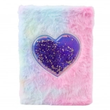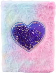 Užijte si nádherné barvy a měkký plyšový materiál, kterým je obal notesu pokryt. Hlavním rysem je průhledná kapsa ve tvaru srdce naplněná třpytkami, které volně plavou a dodávají jedinečnou interaktivní dekoraci.