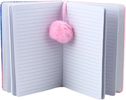 Tento unikátní notýsek oživí vaši vzpomínkovou knihu díky trojrozměrnému efektu, který přitahuje zraky a podněcuje představivost. Přední obálka je ozdobena třpytícím se růžovým jednorožcem zasazeným na holografickém pozadí, které je vyplněno pohyblivým konfetti v podobě hvězdiček. Dále je součástí zakládka zakončená měkkým bambulkou, funkční a dekorativní prvek zároveň.