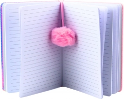 Funkční záložka zakončená růžovým pomponem ulehčí přístup k vybrané stránce a přidá kouzelný dekorativní prvek. Uvnitř je 80 linkovaných listů, které jsou ideální pro deník, školní sešit, organizér či kreativní zápisky.