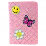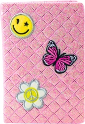 Tento sešit ve formátu zhruba B6 je dokonalým nástrojem pro každodenní použití. Atraktivní brokátový obal je nejen esteticky přitažlivý, ale díky laminaci odolný vůči opotřebení. Kolorové nášivky ve tvaru hvězdičky, úsměvu a blesku přidávají mladistvý šmrnc.