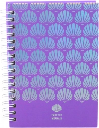 Fialová obálka s mušlemi dodává notýsku moderní vzhled.