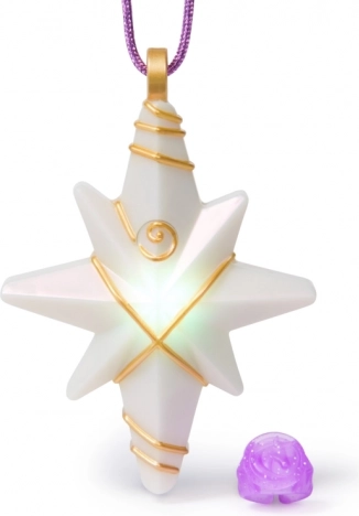 Hvězdička s perleťovým tělem a zlatými detaily se po stisku tlačítka rozzáří do několika barev i bíle – přesně jako u Sophie v Unicorn Academy.
