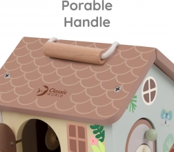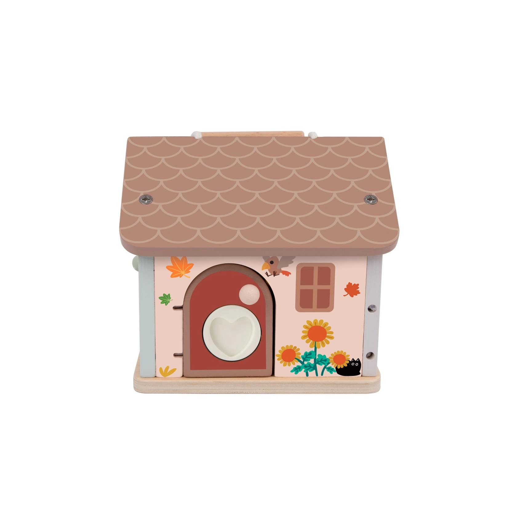 Objevte kouzlo malebného dřevěného domečku, který poskytuje 11 dílků pro hravé skládání! Tento set rozvíjí jemnou motoriku, koordinaci a fantazii vašich dětí, díky praktickému držadlu si ho děti snadno přenesou kamkoli.
