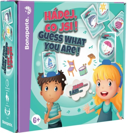 Zábavná rodinná hra, která rozesměje děti i dospělé. Hráči si nasadí čelenku s kartičkou a pomocí otázek s odpověďmi ANO/NE zjišťují, kým nebo čím jsou. Hra podporuje logické uvažování, komunikaci a navíc pomůže osvojit si 80 anglických slovíček. Ideální na rodinné večery i setkání s přáteli.