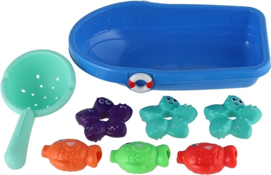 Sada obsahuje několik roztomilých tvarů rybek a hvězdic v pestrých barvách. Děti je mohou chytat sítkem nebo je nechat volně plout.