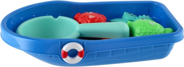 Tato barevná sada do vody přináší dětem spoustu smíchu i učení. Pevná plastová lodička plave na hladině, sítko s otvory je skvělé na nalévání a cezení vody a roztomilá mořská zvířátka lákají k chytání a třídění podle tvarů a barev.