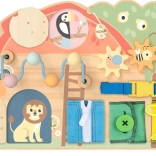 Objevte kouzlo zábavy s touto hrací deskou obsahující veselá zvířátka, která pomůže rozvíjet jemnou motoriku a zručnost Vašeho dítěte. S zámky, labyrintem, zipy a tkaničkami nabízí nekonečné možnosti pro učení každodenních dovedností.