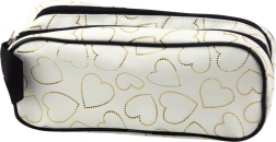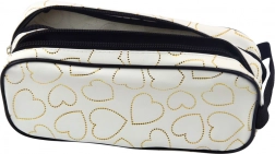 Tento bílý penál se zlatými srdíčky poskytuje vynikající organizaci díky dvěma odděleným prostorům pro ukládání vašich psacích potřeb. Snadno do něj uložíte nejen pera a tužky, ale také pravítka, gumy a zvýrazňovače. Samostatné komory zajišťují lepší přehlednost a pořádání.