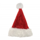 Klasická červená vánoční čepice s bílým lemem a hebkým plyšovým materiálem je ideálním doplňkem pro vánoční období.