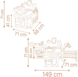 Toto unikátní hrací centrum nabízí tři herní zóny - kuchyňku, koupelnu a ložnici - které poskytnou vašemu dítěti vše potřebné pro realistické hraní.