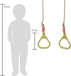 Posuňte dětské hranice zábavy na maximum s gymnastickými kruhy. Tyto kruhy jsou velikostně přizpůsobené i menším dětem, což jim umožňuje bezpečně trénovat nejodvážnější akrobatické kousky. Lana jsou snadno výškově nastavitelná a na koncích mají kovové kroužky pro jednoduché zavěšení.