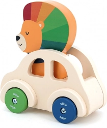 Dřevěné autíčko s klaksonem ve tvaru lva přináší radost a zábavu do hry Vašeho dítěte. Díky klaksonu a barevným detailům rozvíjí jemnou motoriku a představivost.
