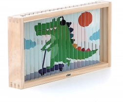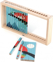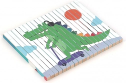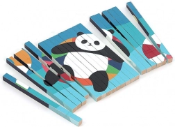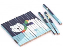 Tato chytře navržená skládanka je perfektní pro zvědavé děti, které se rády učí hrou. Obsahuje dřevěné tyčinky potištěné ze čtyř stran, které zobrazují různé obrázky jako panda, lední medvěd, krokodýl a další. Jemná motorika a logické myšlení dětí jsou rozvíjeny při každém pohybu tyčinek.